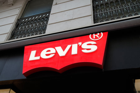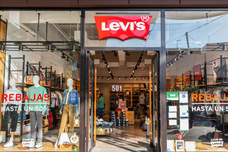 Barcelona, Spain - Jine,06, 2019: entrance to Levi. Levi s is an American maker and retailer of denim clothing