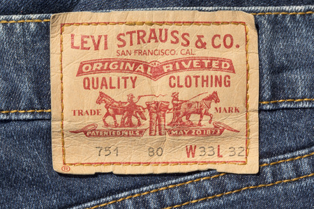 Bangkok, Thailand - August 12, 2015: Close up of the old original 501 LEVI'S tag. LEVI'S is a brand name of Levi Strauss and Co, founded in 1853.