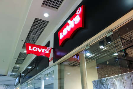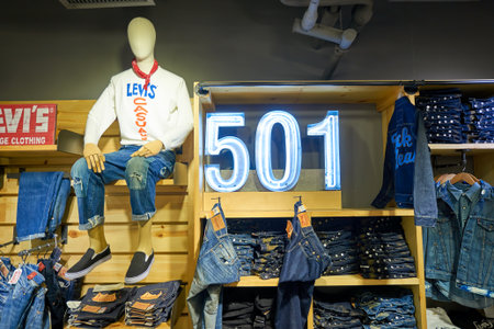 MOSCOW, RUSSIA - SEPTEMBER 14, 2019: interior shot of Levi's store at Salaris shopping mall in Moscow.