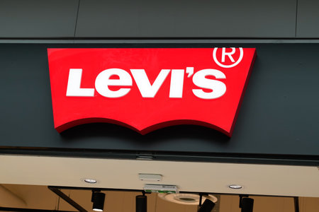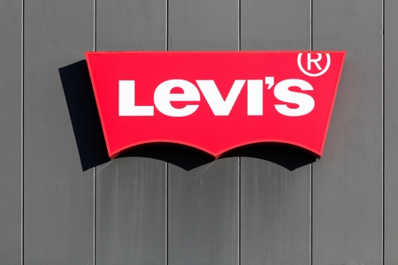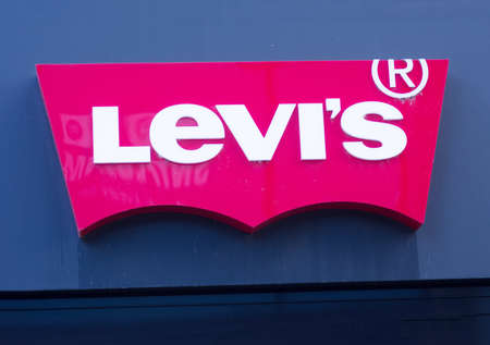 Levi's logo at street, Levi Strauss & Co. is an American clothing company known worldwide for its Levi's brand of denim jeans.