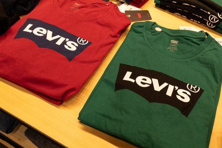 HONG KONG, CHINA - CIRCA JANUARY, 2019: clothes on display at a Levi's store in Hong Kong.