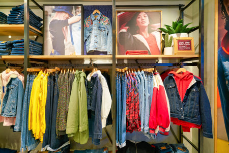 HONG KONG, CHINA - CIRCA JANUARY, 2019: interior shot of a Levi's store in Hong Kong.