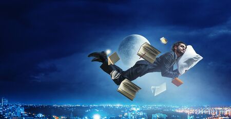Business man flying up mixed media