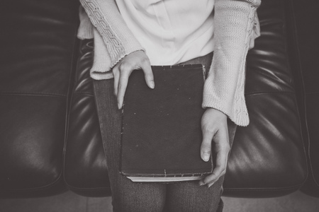 Christian woman holds bible in her hands. Concept for faith, spirituality and religion. Peace, hope.