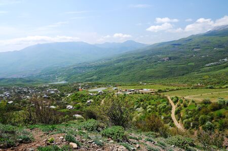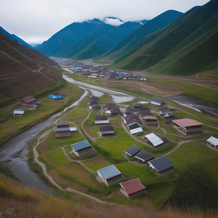 Landscape scenery view of a village at the mountain area