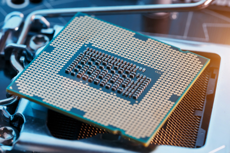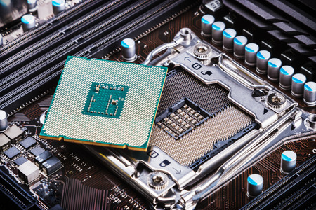 cpu processor on computer motherboard.