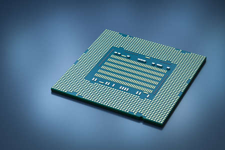 Processor to the computer. Concept for technology and computing. Detail of connectors. CPU Chip Processor for tech science background.