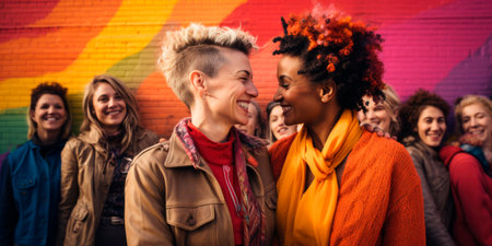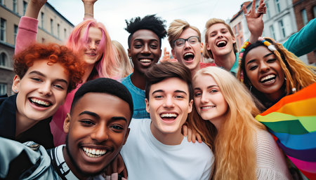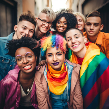 gay pride, rainbow and friends in support of lgbtq community, diversity and inclusion, created with generative ai