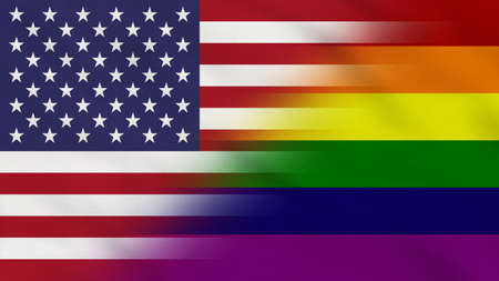 United States of America and Rainbow Flag. Lesbian, Gay, bisexual, transgender and transgender flags.
