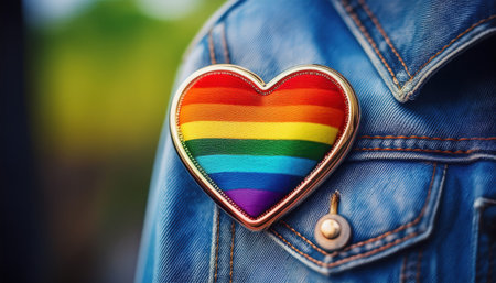 A rainbow heart on a denim jacket symbolizes unity and celebration during pride.
