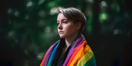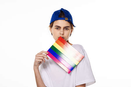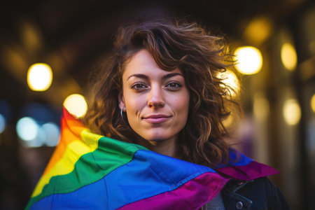 Portrait of a lesbian with a flag in solidarity with the LGBT community.