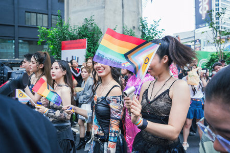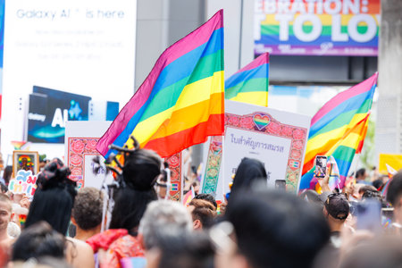 Bangkok, Thailand - JUN 1, 2025 Bangkok Pride Festival 2025, The short action and atmosphere of people joins celebrations in the event. Gender diversity, no division of age, race or religion.