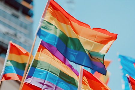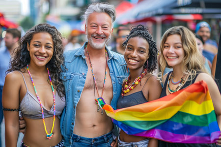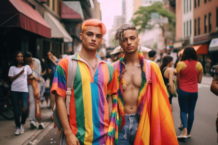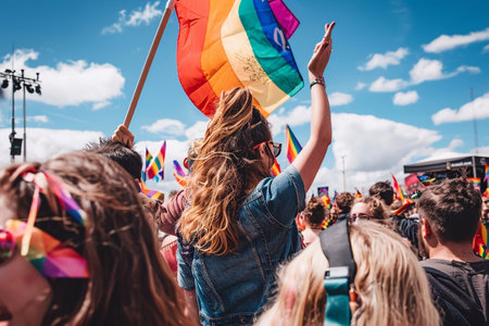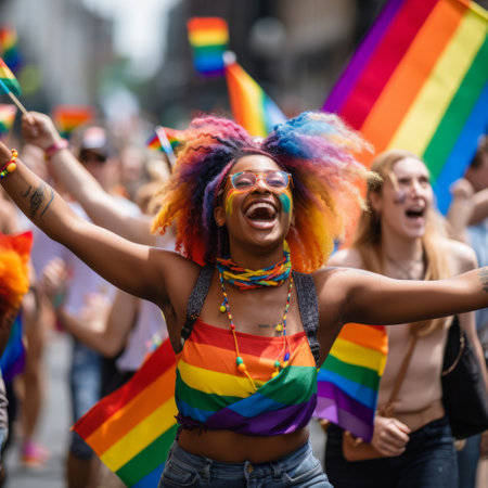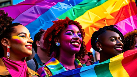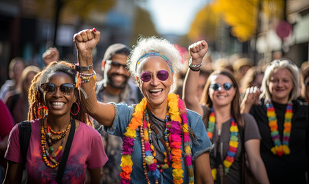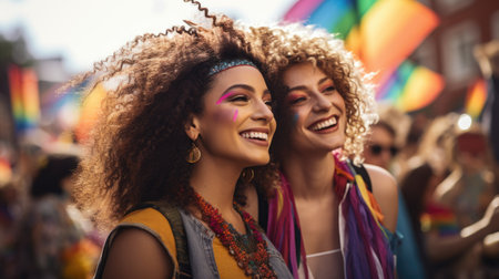 Stock image of LGBTQ pride events and celebrations with diverse participants and vibrant colors Generative AI