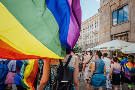 LGBT parade, pride month in Warsaw. Polish and Ukrainian activists march for LGBTQ rights, Equality Parade. Warsaw, Poland, June 25, 2022