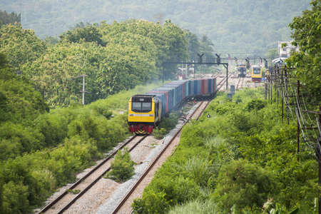 Thai miniature old diesel train. Train connect the city to countryside in Thailand in the long time