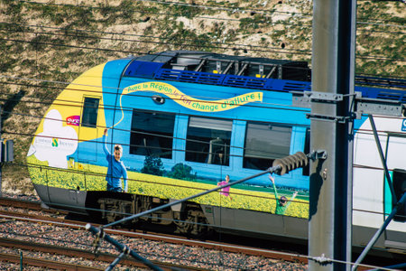 Nice, France - 6 January, 2024: TGV OuiGo train on the railway station platform in Nice