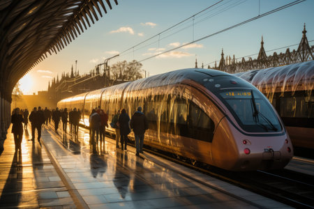 High-speed bullet train racing through a blurred landscape, symbolizing rapid transit and technological advancement