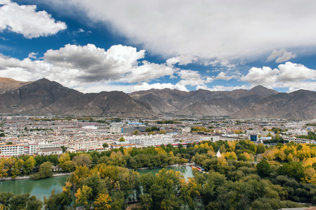 View of the Lhasa cityscape from Potala Palace in Tibet, China