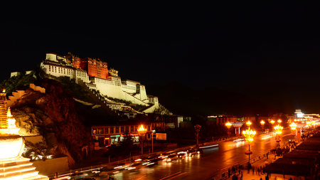 the potala palace in nightfall, lhasa city, tibet autonomous region, China