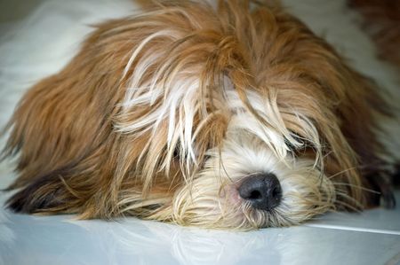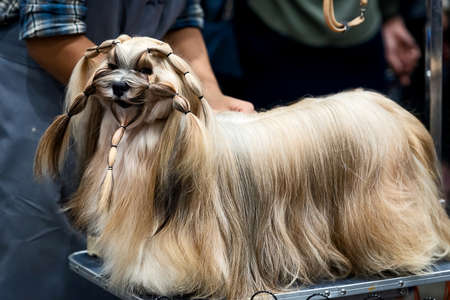 Shaggy puppy Shih Tzu dog.
