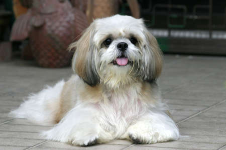 Closeup of Shih-Tzu dog sit on the ground