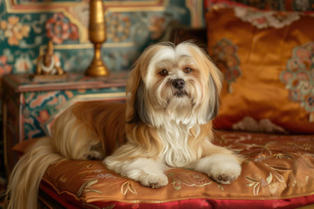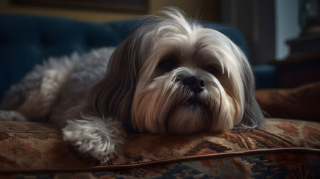 Shih Tzu, also known as the Chrysanthemum Dog, is a toy dog breed sitting and relaxing on floor