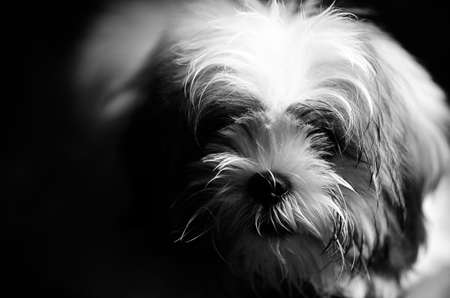 Shih tzu dog black and white portrait.