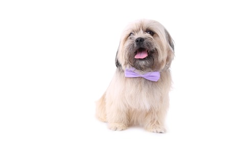 Shih Tzu dog isolated on a white background. Dog with the bow tie isolated on a white