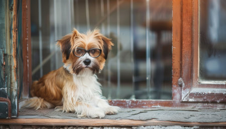 Cute Shih Tzu dog wearing eyeglasses studio portrait