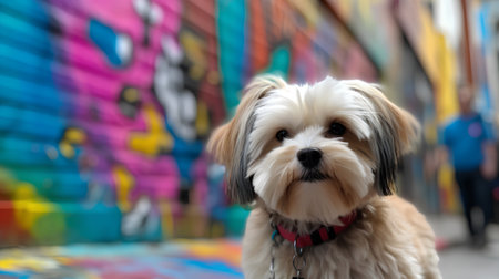 Cute Shih Tzu dog running on the street, selective focus
