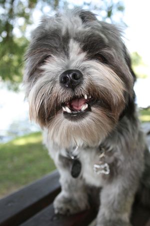 Cute funny shih tzu breed dog outdoors barking