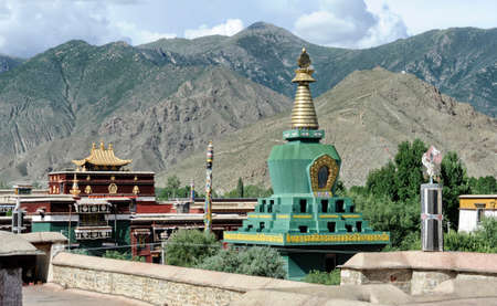 SAMYE, TIBET, CHINA - AUGUST, 16 2018: Green Chörten, Monastery of Samye, Dranang, Lhokha, Tibet, China