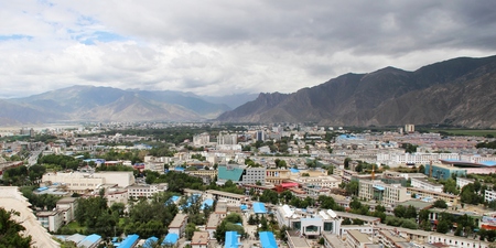 Lhasa town and surrounding mountains in Tibet China