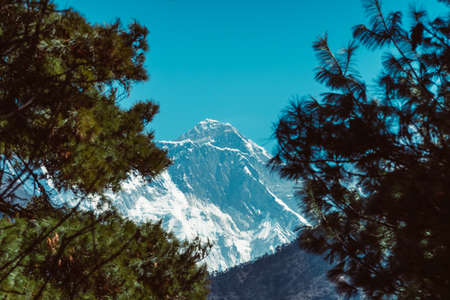 Highest mountain in the worls Everest as seen from near Namche Bazaar in Nepal Himalayas