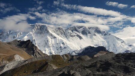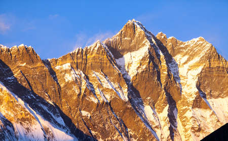 View of top of Lhotse, South rock face, Khumbu valley, Sagarmatha national park, Nepal Himalayas mountains
