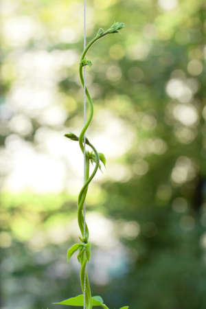 Green steam of haricot twisted on thread