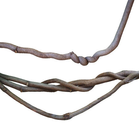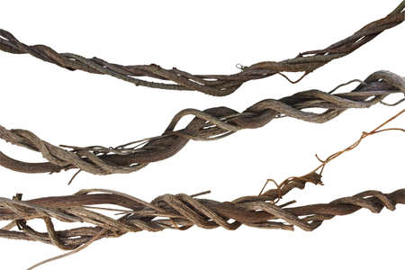 Twisted jungle vines collection, liana plant isolated on white background, clipping path included.