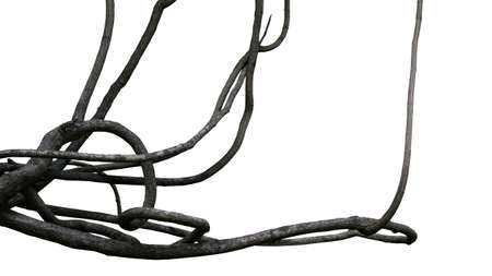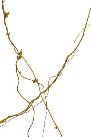 Twisted wild liana jungle vines plant isolated on white background, clipping path included.