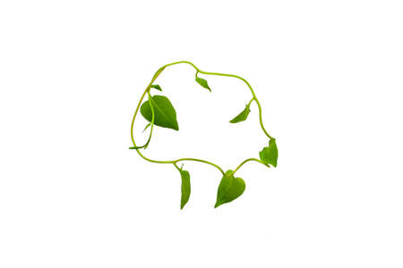 Floral Desaign. Twisted jungle vines liana plant with heart shaped green leaves isolated on white background, clipping path included.