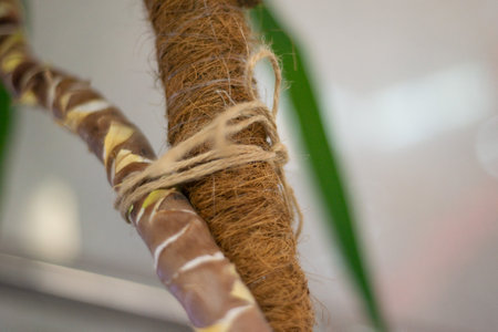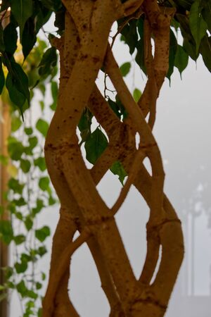 Twisted trunk of homemade ficus close up 2019