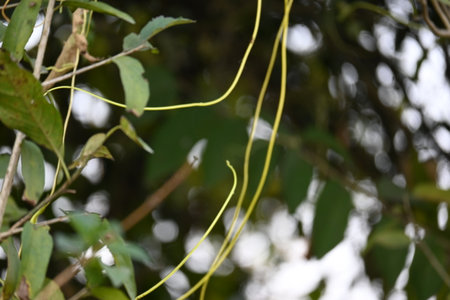 A close up shot of Dioscorea batatas (Igname de Chine) vine. Horticultural climbing plants.