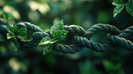 Natures Beauty Rests on a Rustic Canvas: Green Leaves on Brown Rope --ar 3:2