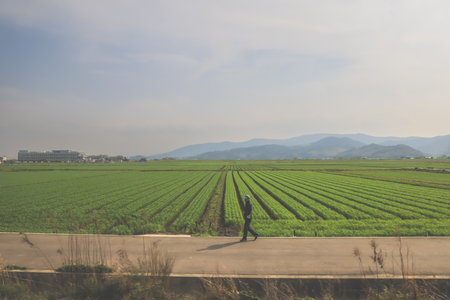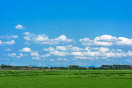 Landscape of paddy farm under blue sky in Hualien, Taiwan, Asia.
