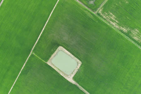 Selangor, Malaysia- November 15, 2017: Aerial view of paddy field at Sungai Sireh, Kuala Selangor.