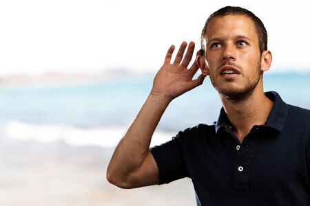 young man hearing the waves of the sea