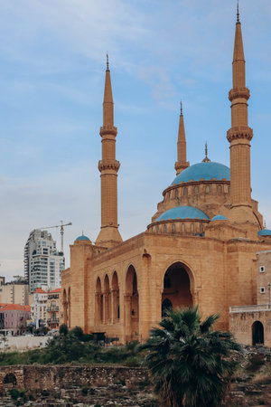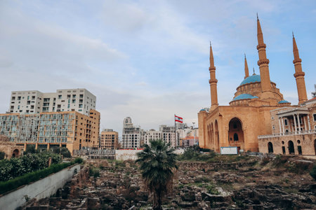 Beirut, Lebanon — 24.04.2023: The Mohammad Al-Amin Mosque, a Sunni Muslim mosque located near the Roman Ruins in the center of Beirut
