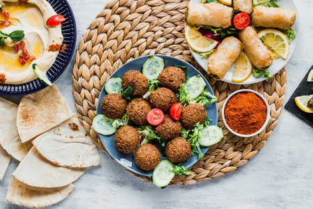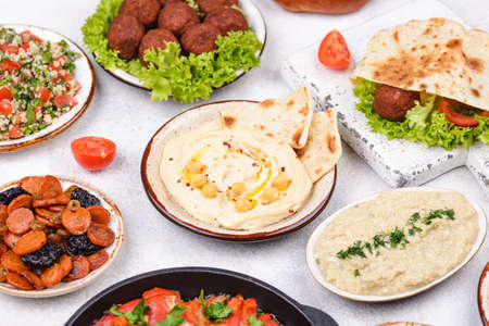 Selection of East Mediterranean appetizers. Fresh Food Buffet Brunch Catering Dining Eating Party Sharing Concept