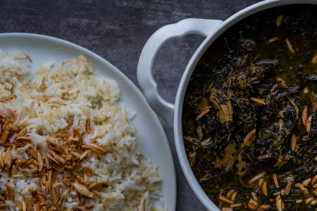 Spinach or Sabanekh with chicken a Mediterranean dish served with rice