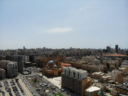 aerial drone shot of Al Amin mosque in Beirut, Lebanon downtown.