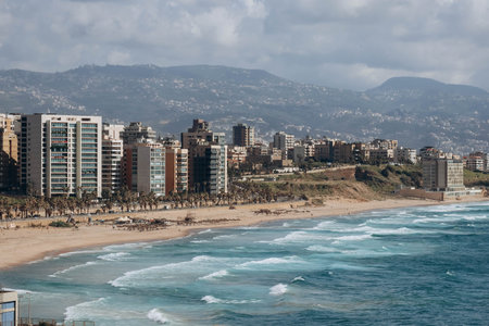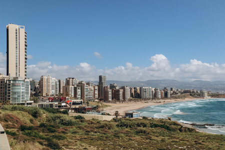 BEIRUT, LEBANON - AUGUST 14, 2014: Modern residential buildings near seaside in the central part of Beirut at summer sunny day.